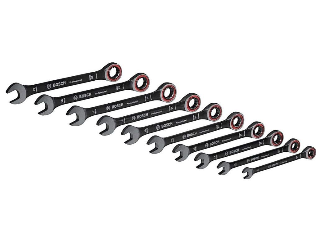 Bộ cờ lê vòng miệng tự động 10 chi tiết Bosch Professional, được làm từ thép Chrome Vanadium chất lượng cao và có lớp phủ màu đen chuyên dụng. Bộ sản phẩm này được thiết kế để sử dụng trong các công việc sửa chữa, lắp ráp trong gia đình, gara ô tô, xưởng cơ khí, v.v..
