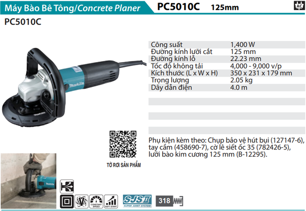 MÁY BÀO BÊ TÔNG 125MM/1400W MAKITA PC5010C CHÍNH HÃNG GIÁ TỐT
