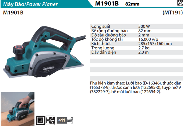 MÁY BÀO GỖ 82MM/500W MAKITA M1901B CHÍNH HÃNG GIÁ TỐT
