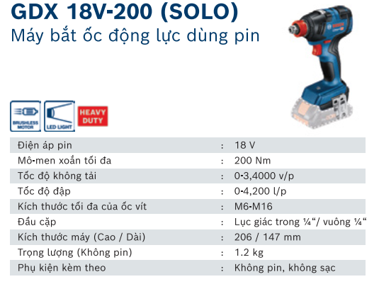 - Tên sản phẩm: GDX 18V-200 (SOLO)