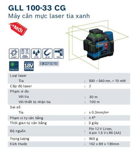 Máy cân mực laser xanh Bosch GLL 100-33 CG