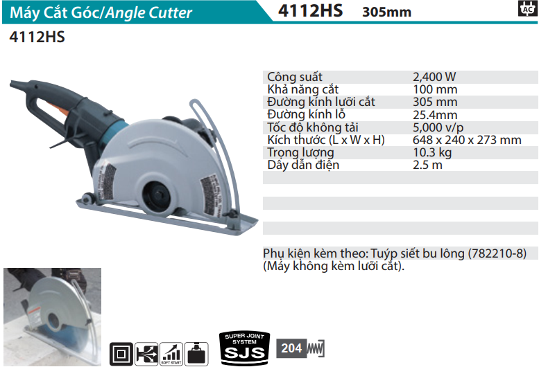- Đường kính lưỡi cắt lớn (305mm/12 inch) và khả năng cắt sâu 100mm (4 inch): Điều này cho phép thực hiện các đường cắt sâu và chính xác, rất quan trọng trong xây dựng và các ngành công nghiệp liên quan đến vật liệu cứng.