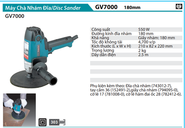 MÁY CHÀ NHÁM ĐĨA 180MM/550W MAKITA GV7000 CHÍNH HÃNG GIÁ TỐT