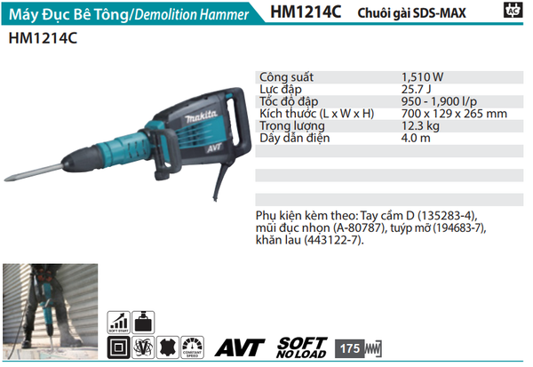 MÁY ĐỤC BÊ TÔNG (SDS-MAX/1510W) MAKITA HM1214C CHÍNH HÃNG GIÁ TỐT