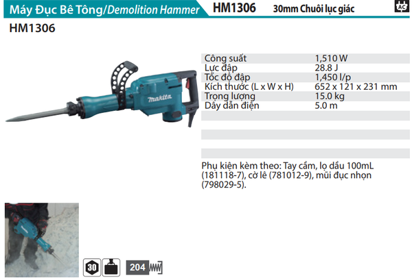 MÁY ĐỤC BÊ TÔNG 30MM/1510W MAKITA HM1306 CHÍNH HÃNG GIÁ TỐT