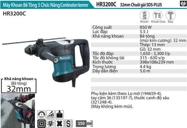 MÁY KHOAN BÊ TÔNG 32MM/850W MAKITA HR3200C CHÍNH HÃNG GIÁ TỐT