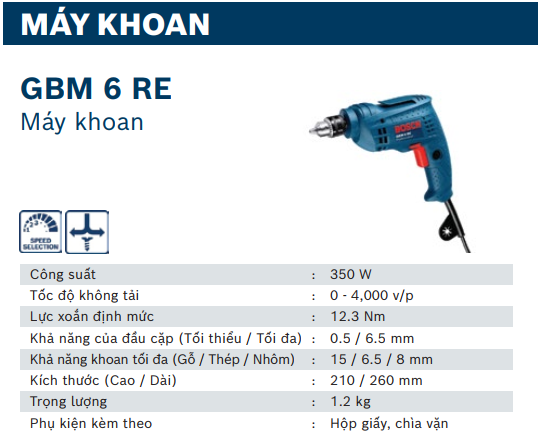 MÁY KHOAN SẮT 6.5MM/350W BOSCH GBM 6RE CHÍNH HÃNG GIÁ TỐT