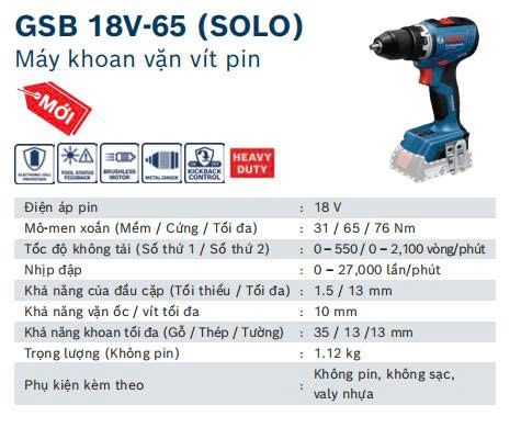 Máy khoan vặn vít pin GSB 18V-65 (SOLO)