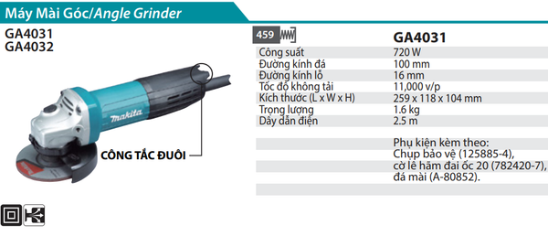 MÁY MÀI GÓC 100MM/720W MAKITA GA4031 CHÍNH HÃNG GIÁ TỐT