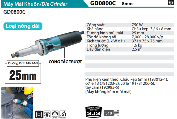 MÁY MÀI KHUÔN 8MM/750W MAKITA GD0800C CHÍNH HÃNG GIÁ TỐT