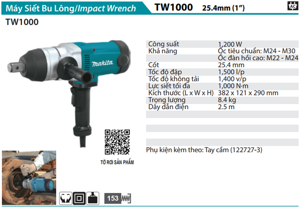 MÁY SIẾT BU LÔNG 25.4MM/1200W MAKITA TW1000 CHÍNH HÃNG GIÁ TỐT